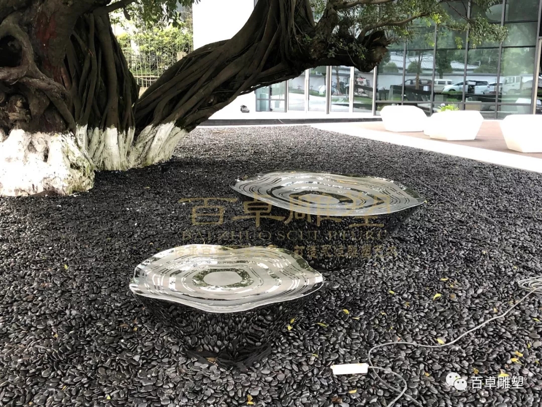 不銹鋼雕塑本身的顏色銀白色,具有光澤,表面效果可鏡面也可啞光。也可根據需求為雕塑上不同的顏色。