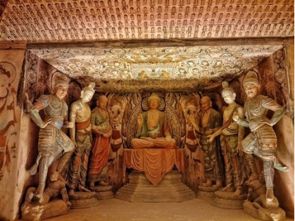 敦煌莫高窟,是古建筑、壁畫、雕塑三者結合為一體的藝術寶庫,除驚艷豐富的壁畫外,敦煌的雕塑也久享盛名。有十幾米高的大型佛像,也有幾十厘米高的菩薩像。絕大部分洞窟都保存有塑像,數量眾多,堪稱是一座大型雕塑館。